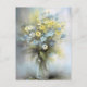 Cartão Postal Flor de Margarida Azul Pastel em Aquarela, Branco,