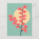 Um caule de cereja rosa floresce com um sol colorido creme sobre um fundo azul claro.