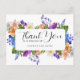 Flores silvestres da campina criam uma bela moldura na parte frontal deste cartão de agradecimento de chá de panela. Flores vermelhas, roxas, rosadas, azuis e brancas criam um colorido display. O verso contém sua foto e uma mensagem de agradecimento abaixo. Este cartão postal de agradecimento de chá de panela faz parte da coleção Timeless Wildflower. Ela contém todos os modelos de casamento DIY necessários para criar um belo e acessível conjunto de papelaria de chá de panela e para personalizar seu chá.