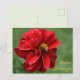 Cartão Postal Flor Vermelha de Dahlia e Abelha Fotografia