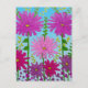 Cartão Postal Flor vívida rosa desenho em azul