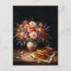 The contrast between soft, layered blooms and the golden, richly toned food elements creates a striking composition that feels both classic and unexpected. Inspired by traditional still life paintings, this design brings an artistic, elevated feel to an everyday subject.
