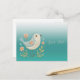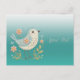 Lindo Cartão Postal Floral com Bordado de Passarinho Verde