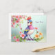Lindo cartão postal floral de pássaro azul fofo rosa