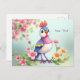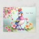 Lindo cartão postal floral de pássaro azul rosa fofo