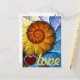 Cartão Postal Floral Orange Yellow Blue Abstrato Art Love