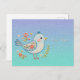 Lindo Cartão Postal Floral Pequeno Pássaro Azul