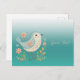 Cartão Postal Floral Pequeno Pássaro com Bordado V