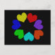 Este postal apresenta uma imagem digitalmente criada de um círculo de corações amorosos. Cada coração tem uma cor diferente do arco-íris. Os corações vermelho, laranja, amarelo, verde, azul, indigo e violeta são uma forma divertida de expressar seu amor por um namorado, namorada, marido ou esposa. O fundo é preto para criar o impacto máximo.
