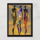 Este cartão-postal das Flores do Deserto Africano é uma na moda de mistura de moda e arte. Apresentando três silhuetas femininas elegantemente expostas em padrões pastéis brilhantes e geométricos, a design capta a estética moderna com pano de fundo do deserto. As cores ousadas e a composição elegante fazem dela uma peça impressionante e sofisticada, perfeita para colecionadores ou admiradores de arte contemporânea de inspiração africana.