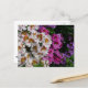 Cartão Postal Flores Borboleta Branca Rosa e Roxa