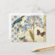 Cartão Postal Flores, Borboletas e Colagem de Aves