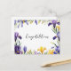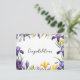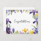 Envie sua mensagem de parabéns com este belo cartão postal. O cartão exibe um design de borda de flores roxas e amarelas da primavera, com a saudação 'Parabéns' no centro branco, caso contrário simples. O verso do cartão postal tem o layout tradicional para você escrever sua própria mensagem.