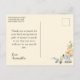 Agradeça à sua família e amigos por comparecerem à Primeira Comunhão de sua filha, enviando-lhes um cartão postal de agradecimento com foto da Primeira Comunhão. Este cartão de agradecimento da Primeira Comunhão apresenta uma bela cruz dourada com uma moldura dourada contra um fundo amarelo suave de cor creme. Um buquê de belas flores em tons de pêssego e azul em aquarela é colocado em cada canto. Coloque a foto de seu filho na frente e escreva uma mensagem pessoal pré-impressa com uma assinatura no verso para sua conveniência, bem como seu endereço de retorno.
