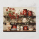 Cartão Postal Flores de Cerâmica Branca Vermelha na Prateleira d