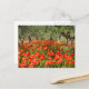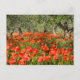 Cartão Postal Flores de papoila vermelha sob oliveiras antigas