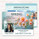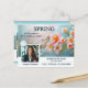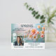 Cartão postal do marketing Imobiliário com uma bonito imagem de flores de primavera com sua foto personalizada na frente. No verso estão 3 fotos da sua escolha do seu portfólio. Também é adicionado um logotipo e um modelo de código QR.