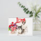 Um retrato de dois chihuahua, algumas flores e um sinal de amor