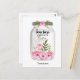 Um cartão postal de agradecimento ao professor com um pote de pedra com flores cor-de-rosa com um laço de aniagem na tampa. Diz "Os professores nos inspiram a florescer" com a palavra florescer em um design de brilho dourado. Por favor, note que não há brilho real neste produto.