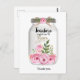 Um cartão postal de agradecimento ao professor com um pote de pedreiro com flores cor-de-rosa com um laço de aniagem na tampa. Diz "Os professores nos inspiram a florescer" com a palavra florescer em um design de brilho dourado. Por favor, note que não há brilho real neste produto.
