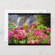 Mande uma bela imagem de flores cor-de-rosa, apoiada por uma cascata.