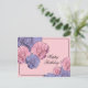 Cartão Postal Flores Rosa e Roxa Feliz Aniversário