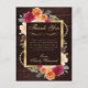 Este cartão postal de agradecimento, quente e elegante, apresenta um rico fundo de madeira rústica emoldurado com vibrantes flores de outono em tons de laranja queimado, vermelho profundo, pêssego e creme. Uma moldura dourada refinada destaca sua mensagem lindamente, criando uma maneira sincera e elegante de agradecer aos convidados por celebrarem com você. Perfeito para aniversários de outono, locais de casamento em celeiros, reuniões ao ar livre ou qualquer pessoa que ame a estética do outono aconchegante com um acabamento polido e sofisticado. Personalize o nome e a mensagem para criar um presente significativo que seus convidados apreciarão.