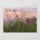 Flores selvagens fotografadas contra um céu cor-de-rosa ao anoitecer