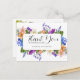 As flores silvestres do prado criam uma bela moldura na parte frontal deste cartão de agradecimento de chá de panela. Flores vermelhas, roxas, rosas, azuis e brancas criam um colorido display. O verso contém sua foto e um sentimento de agradecimento abaixo. Este cartão postal de agradecimento de chá de panela faz parte da coleção Timeless Wildflower. Ela contém todos os modelos de casamento DIY necessários para criar um conjunto de papelaria de chá de panela lindo e acessível e para personalizar seu chá.