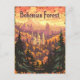 Uma representação serena e nostálgica da Floresta Boêmia (Šumava) na Europa Central, que abrange a República Checa, a Alemanha e a Áustria. A design capta as matas densas da região, lagos tranquilos e colinas rolantes. Criada no estilo vintage, a trabalho de arte evoca a atmosfera encantadora e pacífica da Floresta Boêmia, convidando os espectadores a explorar sua natureza primitiva, trilhas cênicas e rica biodiversidade.