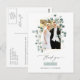 Cartão postal de agradecimento de casamento em aquarela com moldura geométrica dourada. Uma foto em formato retrato é recomendada.
