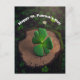 Um shamrock cresce em um toco de árvore na floresta de shamrock para Ruas. Dia de Patrick.