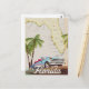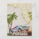 Belo mapa ilustrado do estado da Flórida e das ilhas da região em um belo estilo de vintage com um carro retrô dos anos 50.