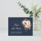 as aquarelas caem arnu, pincel e flores douradas com design de script branco e cor azul marinho. Você pode editar o texto e as cores.