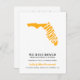 Compartilhe seu novo endereço residencial com amigos e familiares com anúncios móveis ou realocações de chic, apresentando um mapa de silhueta do estado da FLORIDA com a tipografia moderna. Use os campos fornecidos para sua introdução personalizada, nome da família e novo endereço. . Adicione uma mensagem personalizada no verso. FLORIDA cor amarelo alaranjada amarelo-açafrão cor do mapa é totalmente mudável!!