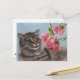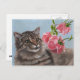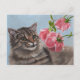 Cartão postal Fluffy Cat e 3 Rosas Rosa