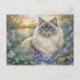 Cartão Postal Fluffy Himalayan Cat In Purple Garden at Sunrise