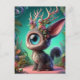 Cartão Postal Fluffy Jackalope Bunny Adorável com Olho Solteiro