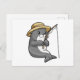 Cartão Postal Foca na pesca com vara de pescar e chapéu