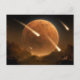 Ilustração de um mundo alienígena com um chá de meteoros e uma lua grande.