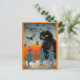 Cartão Postal Foguete Gato Gato Bat Halloween no outono