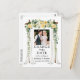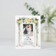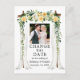 Vestido Elegante Canopy Watercolor Yellow Floral Change A Data de Adiamento de Casamento Novo Cartão de Casamento inclui rosas amarelas e flores brancas. O arco da copa do casamento da madeira inclui vegetação botânica. Foto do casal.