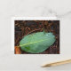 Uma folha verde solitária repousa sobre o mulch, salpicada com gotas de orvalho. Envie um pouco de calma natural para alguém hoje!
