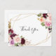 Este obrigado de folhagem floral e botânica rústico que você faz é perfeito para o casamento moderno. A design apresenta flores e folhagem lindas e coloridas desenhadas à mão, elegantemente organizadas em buquês atraentes, enfeitando uma armação geométrica dourada. Personalize a parte traseira do cartão postal, incluindo seus nomes, endereço de devolução e um obrigado da mensagem. Ou deixe a seção modelo da mensagem do obrigado do do para redigir algumas palavras em cada placa depois que elas chegarem. Estas cartas podem ser usadas para um casamento, chá de panela, ou quando quiser dizer obrigados.