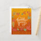 Folhas de outono coloridas com tipografia branca em fundo laranja queimado, terracota e amarelo gradiente e nome da família para personalizar. Perfeito para um maravilhoso cumprimento para familiares e amigos durante as férias de Ação de Graças.