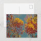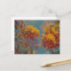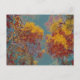 Olhando para o alto das árvores durante o outono, editado para parecer uma pintura das folhas rosa, vermelha e ouro.