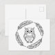 Cartão Postal Folk Owl Line Art cercado por Penas