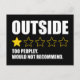 Fora - Demasiado Pobre. Não Recomendaria. Este acessório sarcástico de citação engraçada é excelente para homens, mulheres, adolescentes e crianças que são introvertidos e um pouco antissociais, adoram ficar dentro em casa, e dariam fora uma revisão de uma estrela. Muitas pessoas! Se você é uma pessoa introvertida que é antissocial, você prefere evitar pessoas, amar a solidão de sua própria casa, ter senso de humor e amar sarcasmo, então esse ditado engraçado é design para você!