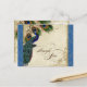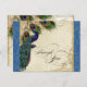 SELEÇÃO DE PAPEL: Os cartões postais são impressos em um estoque muito bonito, muito pesado, brilhante na parte frontal e acabamento de fósforo no verso. PALETA DE CORES: azul-horizonte, bronzeado, creme, azul real, verde e ferrugem. DESIGN: Correspondência de cartões de Nota de Obrigado, estilo de cartão postal. Essa coleção antiga de casamentos inspirados na safra tem um conjunto completo de produtos e pode ser criada em várias cores. Se quiser que seja igual ao seu casamento, avise-nos por e-mail e ficaremos felizes em ajudá-lo. Este design consiste de um pavão estonteante em um ramo de árvore, com três penas de pavão e sobre um anjo de gravura, espirros, escrita manual antiga, pergaminho com rendas pintadas à mão e uma bela cor damasco de arte original. A cor de fundo pode ser alterada para corresponder ao seu casamento.