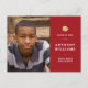 Este cartão-postal do anúncio de graduação moderno mostra uma grande foto e seu nome de formando. A design inclui um boné de formatura de ouro, uma tipografia branca moderna e um fundo vermelho. No verso, você pode adicionar uma mensagem pessoal e formando detalhes da parte.